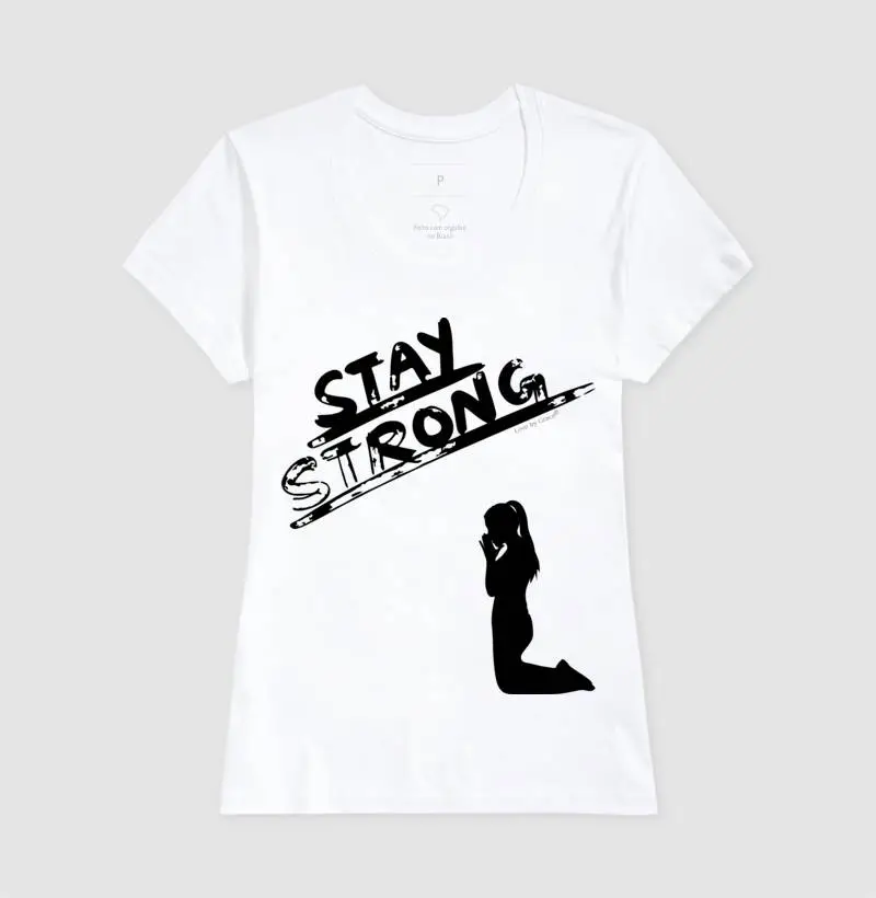 Nossas camisetas são de excelência em algodão brasileiro, ideais para todos os climas. Todas as cores são 100% algodão; exceto cinzas: 88% algodão e 12% poliéster.